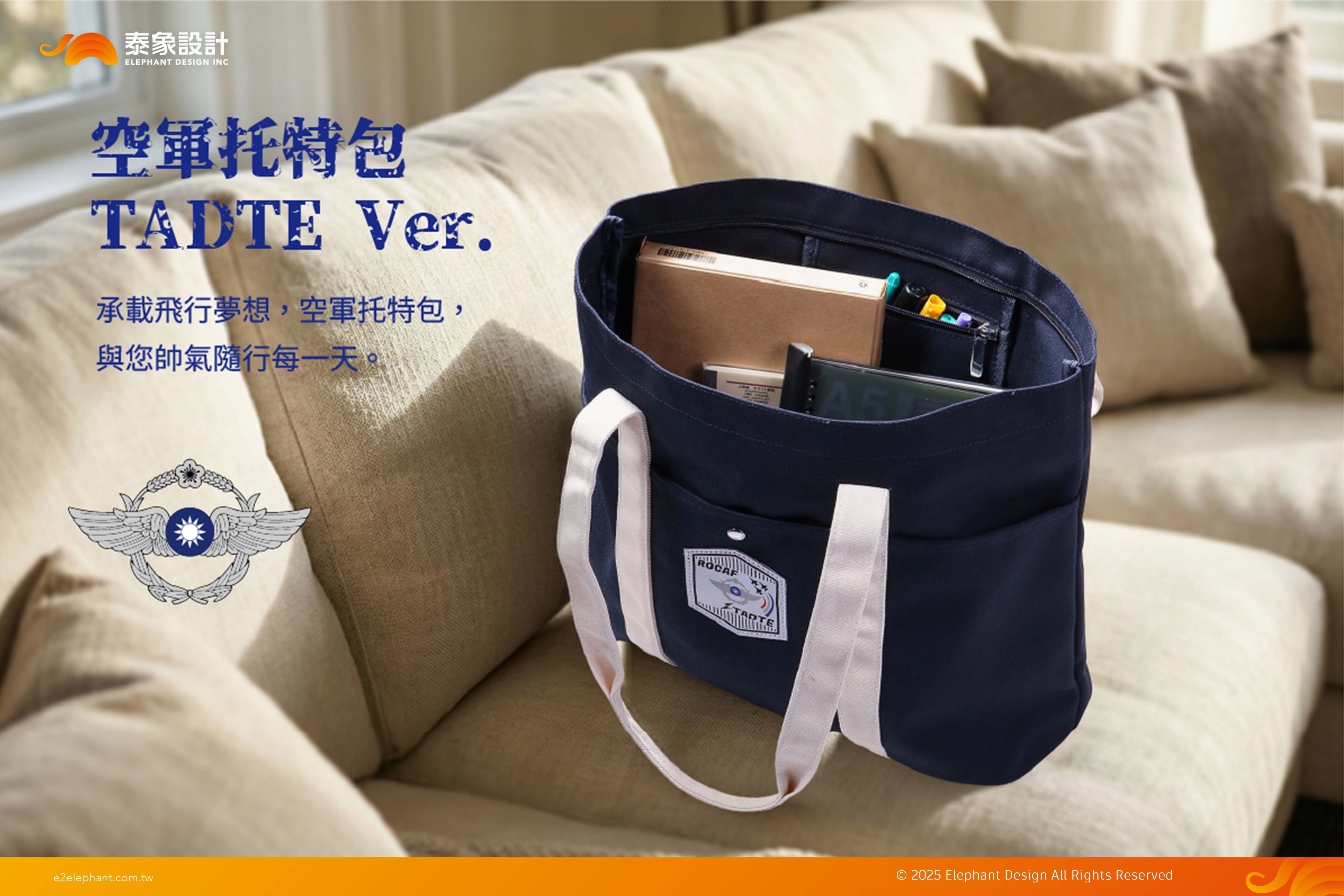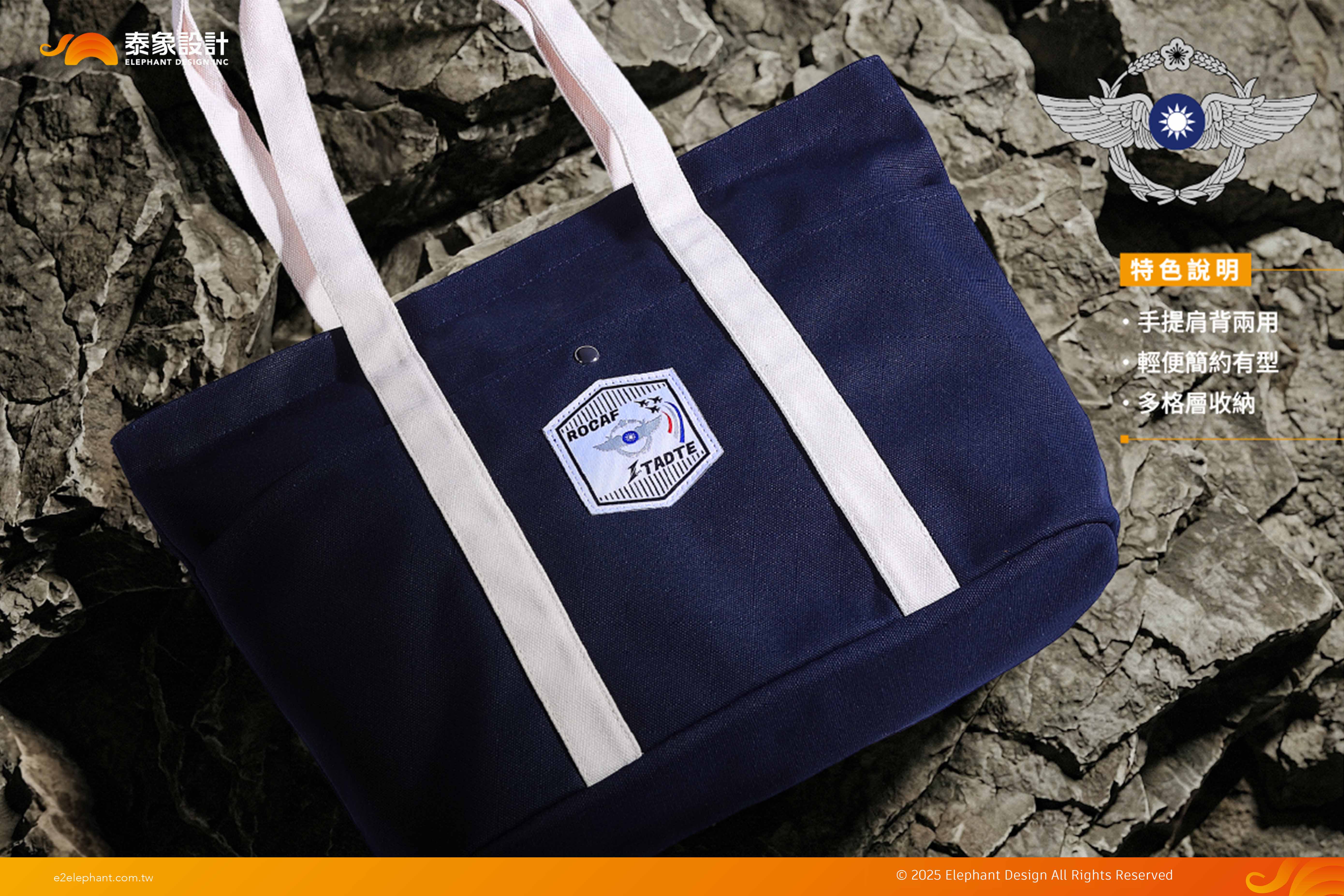 此次參與國際級航太暨國防盛會,從設計發想、視覺細節到實際使用,將「空軍形象」融入日常,讓空軍托特包不只在展場亮相,更走進生活、被長久使用,成為傳遞空軍形象的最佳載體。