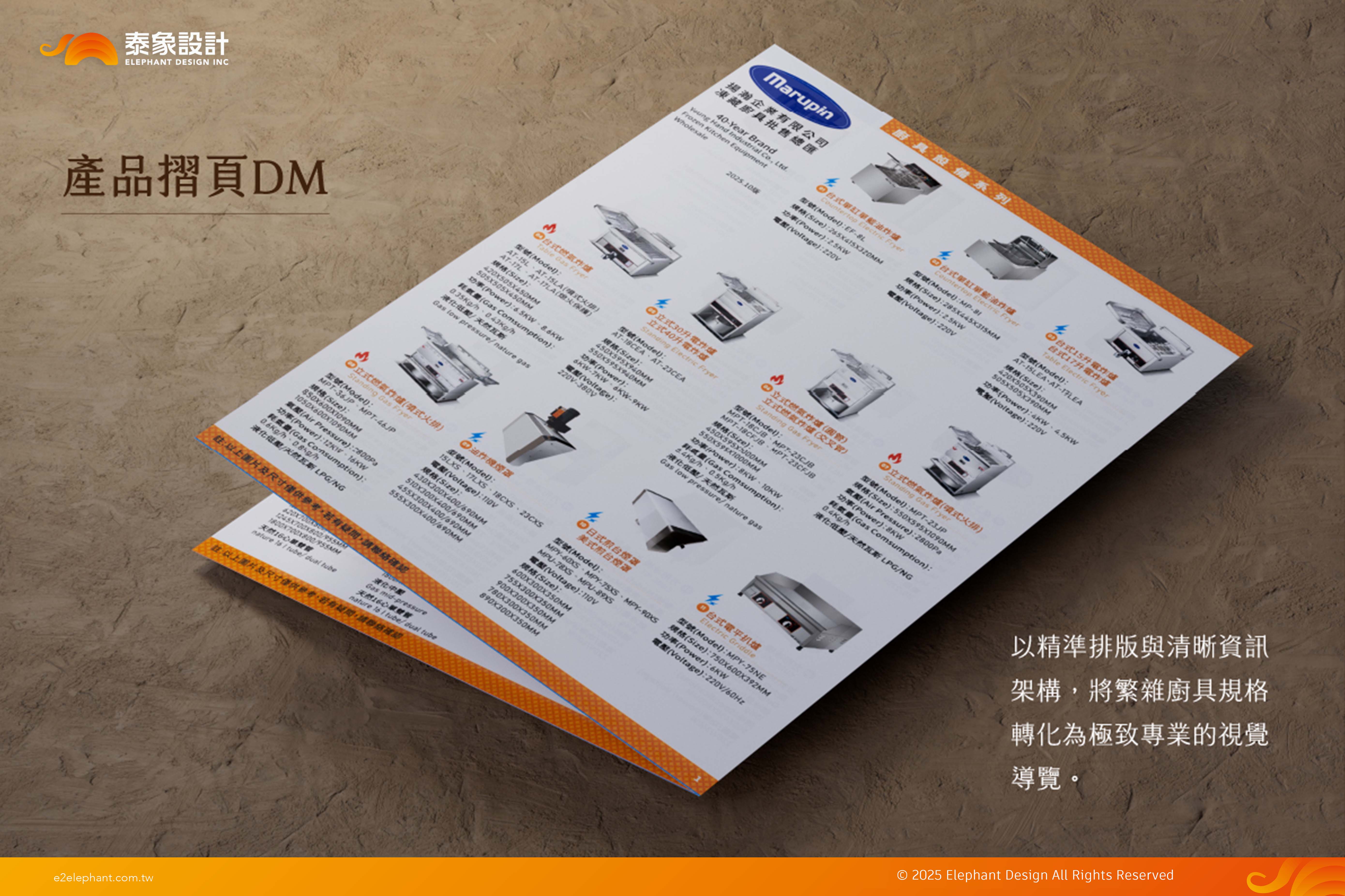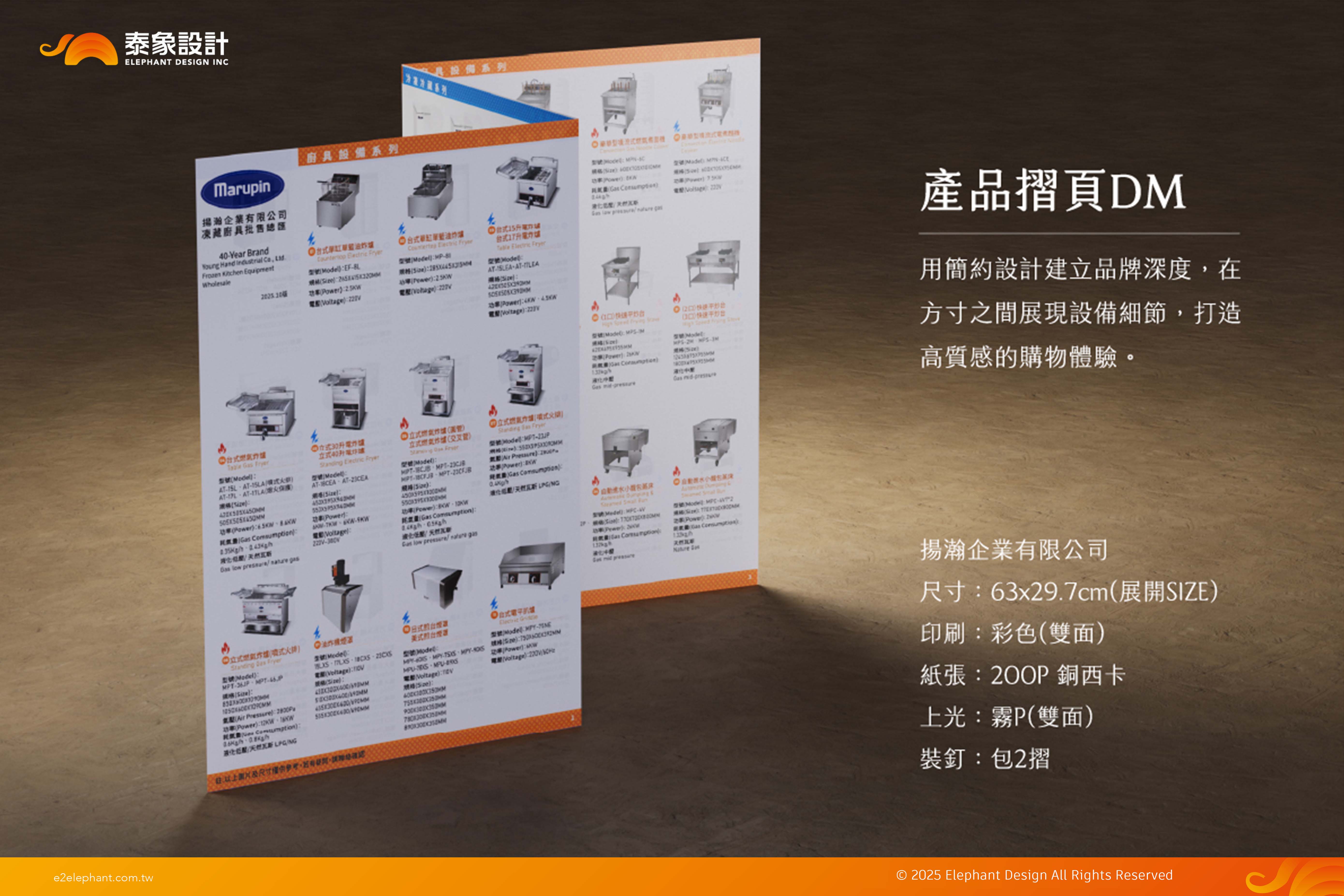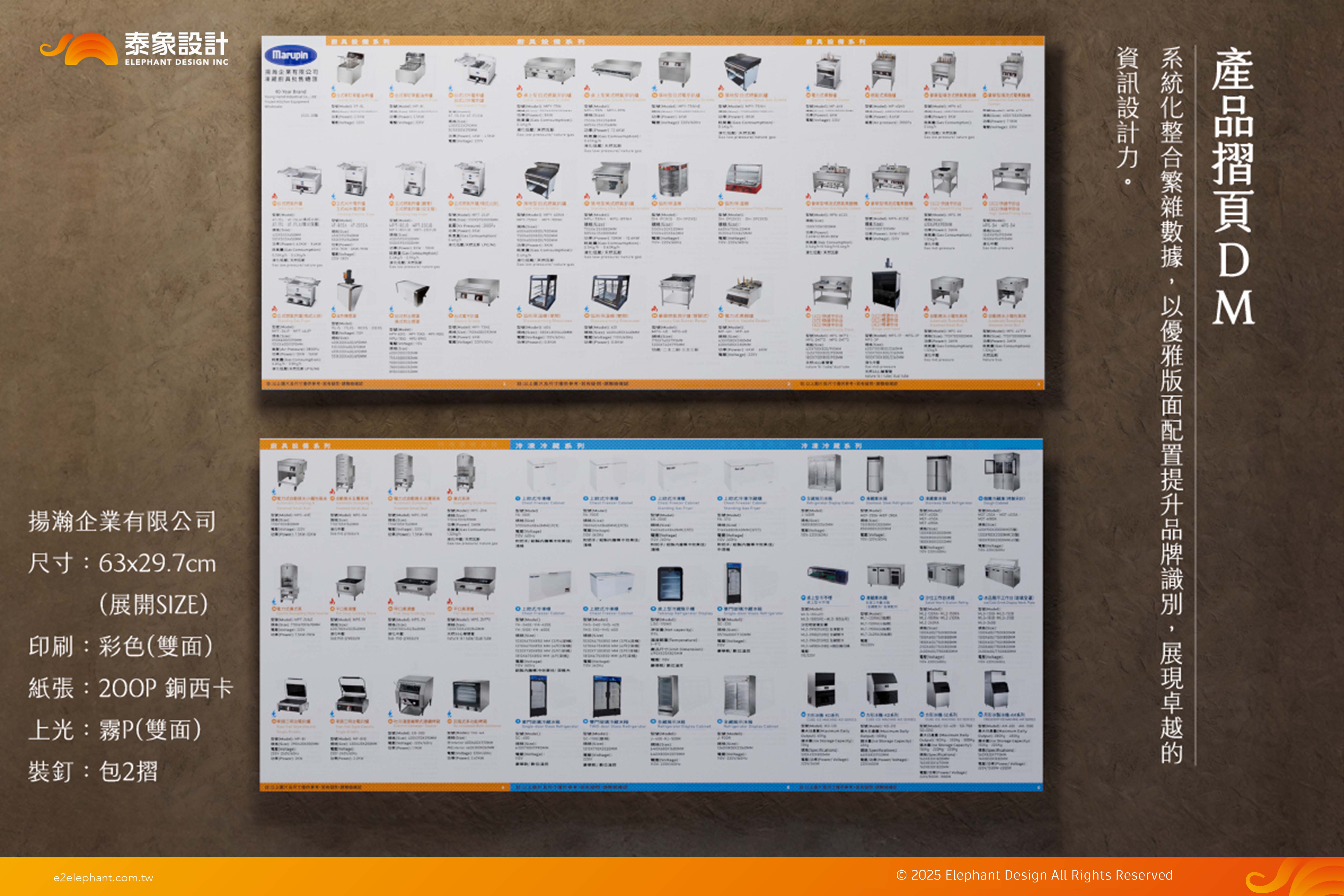 一、以精準排版與清晰資訊架構,將繁雜廚具規格轉化為極致專業的視覺導覽。