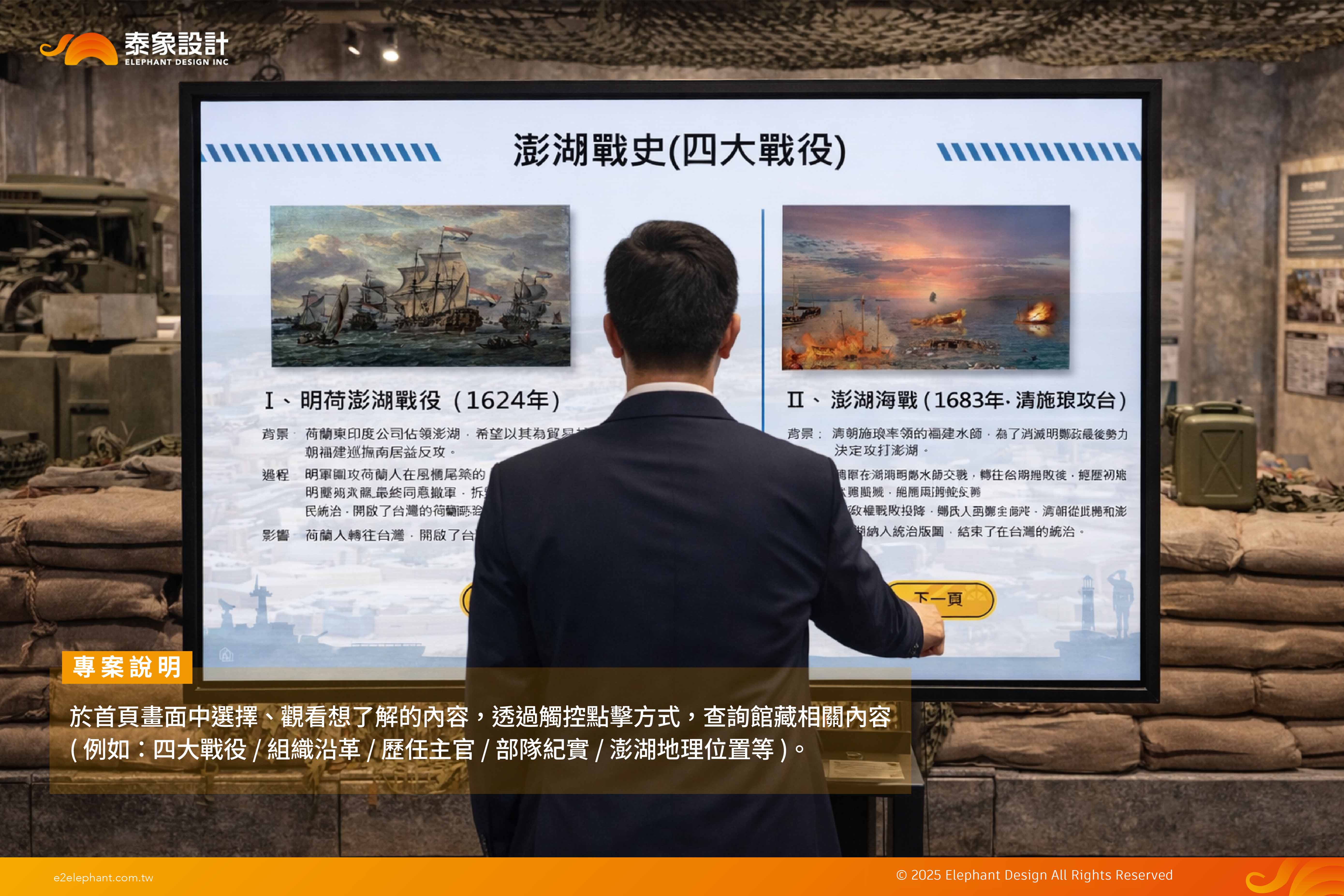 數位展示:四大戰役 / 組織沿革 / 歷任主官 / 部隊紀實 / 澎湖地理位置